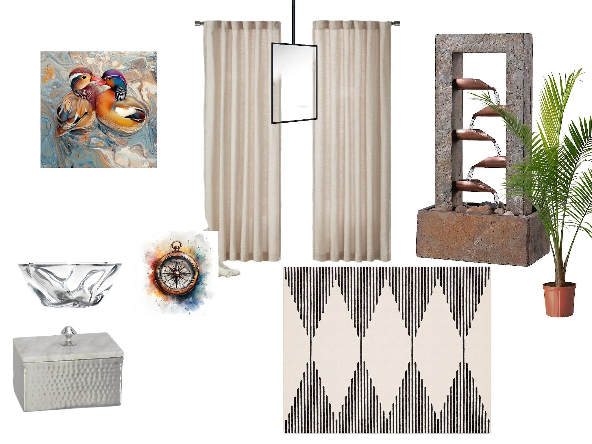 - Integrated earth tones and soft textures to create a grounded, harmonious environment, and suggested thoughtful placement of plants and art for vibrancy.